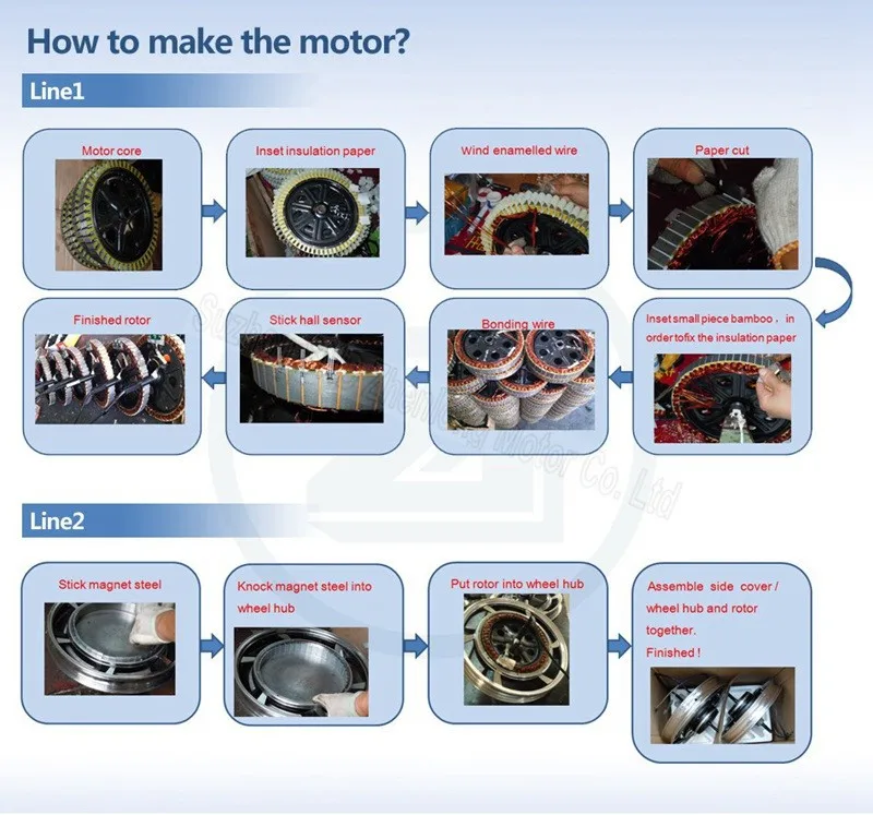 ZL MOTOR 16inch wheel motor 48V60V72V 500W brushless gearless motor / speed and torque can make to order G-M003 Quick Details: partname: G-M003 Rated Voltage 48V60V72V Rated Power 500W~1000W Max Speed 620rpm Max Speed 42m/h Cable location right side Brake type Drum brake Specification 16" tire type 16*2.5"/ 16*3.0" Fork size 155mm Notice: This motor can install withdrum brake only. Diameter of the motor is 320mm. Width of the wheel rim is 50mm. character: 1/ Classical fashion, elegant appearance. 2/ Low power consumption and long riding distance. Delivery Detail: 5 days after recieving the payment. Parcel to Russia / Singapore has specialexpress route with cheap shipping cost. Please contact us to realise the details when you placing an order. For more favorable production price and express discount, feel free to contact us.